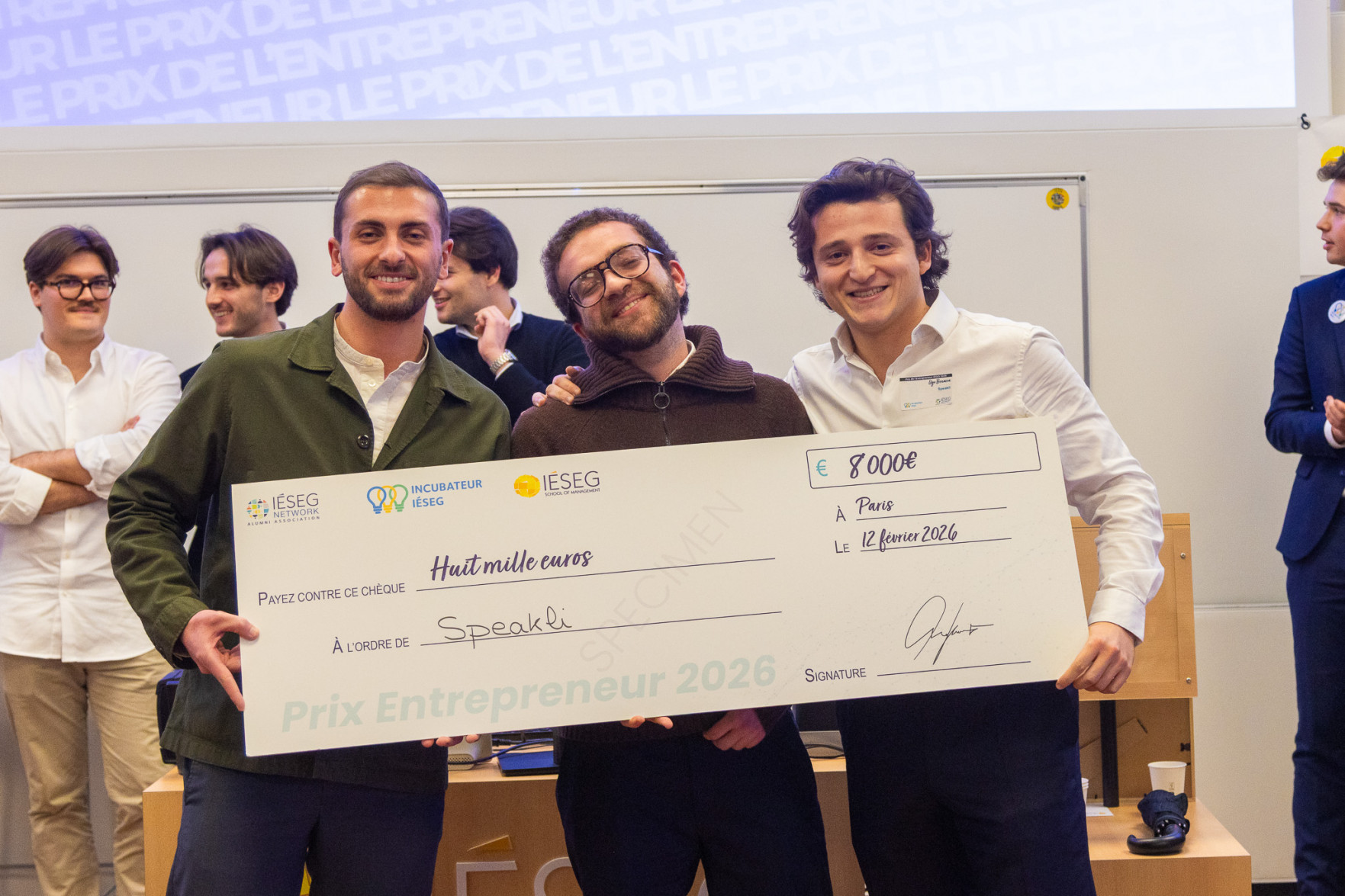 Following deliberations by the jury, chaired by Christophe Catoir (Grande École 1995), President of Adecco Worldwide, the winners were announced: Speakli won the IÉSEG Entrepreneur of the Year Award 2026 (€8,000) as well as the Audience Award, while GLYDZ received the Jury's Favorite Award (€2,000).